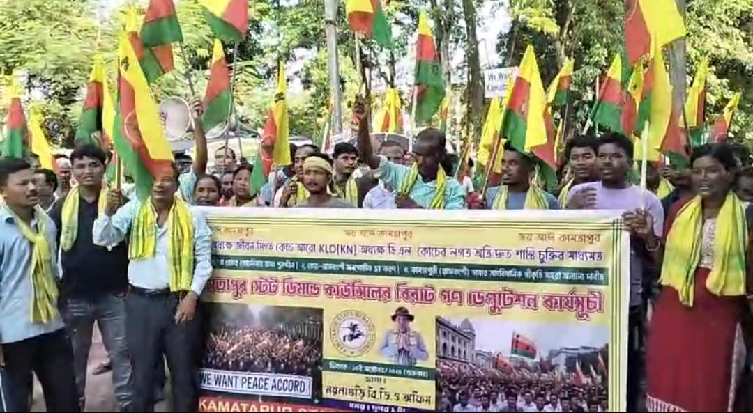 ময়নাগুড়ি, ১০ অক্টোবর : পৃথক কামতাপুর রাজ্য, জনজাতি করণ এবং ভাষার স্বীকৃতির দাবিতে বৃহত্তর আন্দোলনে নামার ডাক দিলেন কামতাপুর স্টেট ডিমান্ড কাউন্সিল। শুক্রবার এই তিন দফা দাবিতে ময়নাগুড়ি বিডিও অফিস সহ উত্তরবঙ্গ, আসাম, বিহারের বিভিন্ন এলাকায় এই ডেপুটেশন দেওয়া হয়। এদিন সংগঠনের তরফে জানানো হয়, কেন্দ্রীয় সরকার কে এল ও চিফ জীবন সিংহ এবং কে এল ও কেএন ডি এল কোচকে শান্তি আলোচনার জন্য ডেকে এনে এখনো সম্পন্ন করছেন না। অবিলম্বে অর্থাৎ পঁচিশ সালের মধ্যে যদি কোনো সুরাহা না হয় তাহলে আগামী দিনে উত্তরবঙ্গ, আসাম এবং বিহারে বৃহত্তর আন্দোলনে নামবে এই সংগঠন। এমনই হুশিয়ারি দিয়েছেন সংগঠনের নেতৃত্বরা।