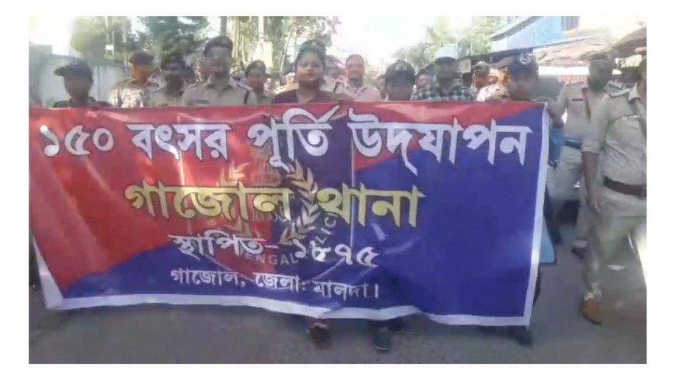 আব্দুল ওহাব, মালদা: মালদা জেলা পুলিশ প্রশাসনের সহযোগিতায় গাজোল থানা পুলিশ প্রশাসনের উদ্যোগে প্রবল উৎসাহ-উদ্দীপনার মধ্য দিয়ে পুলিশ দিবস ও গাজোল থানার ১৫০ বছর পূর্তি উদযাপন অনুষ্ঠিত হয় গাজোল বিদ্রোহী মোড় এলাকায়।প্রথমে এই দিন উপলক্ষে কেক কেটে গাজোল থানা থেকে একটি রেলি বের হয়ে গাজোল বিদ্রোহী মোরে যান সেখানে পুলিশ দিবস ও গাজোল থানার দেড়শ (১৫০) বছর পূর্তি উপলক্ষে নানা অনুষ্ঠান অনুষ্ঠিত হয়। এই অনুষ্ঠানে হেলমেট বিতরণ ও ফুটবল বিতরণ কর্মসূচি পালন করা হয়। উপস্থিত ছিলেন মালদা জেলার পুলিশ সুপার প্রদীপ কুমার যাদব সহ মালদা জেলার অন্যান্য পুলিশ আধিকারিক , গাজোল থানার আইসি আশিস কুন্ডু সহ অন্যান্য পুলিশ আধিকারিক বিন্দু। উপস্থিত ছিলেন গাজোল বিডিও সুদীপ্ত বিশ্বাস সহ গাজোল ব্লকের প্রবীণ নাগরিক বিন্দু। পুলিশ দিবস ও গাজোল থানার দেড়শ (১৫০) বছর পূর্তি উপলক্ষে আলোচনা সভা অনুষ্ঠিত হয়। এ উপলক্ষে পুলিশের পক্ষ থেকে পুলিশ অফিসারদের ও গাজোল ব্লকের প্রবীণ নাগরিক বিন্দুদের সংবর্ধনা জ্ঞাপন করে থাকে।