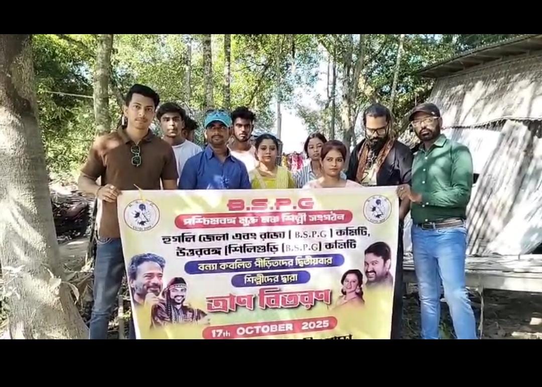 ময়নাগুড়ি: শুধু মঞ্চে গান পরিবেশন নয়, সামাজিক কাজেও এগিয়ে এলেন শিল্পীরা। গত ৫ অক্টোবর ময়নাগুড়ি ব্লকের জলঢাকা নদী সংলগ্ন এলাকায় বন্যা পরিস্থিতি তৈরি হয়। প্রচুর মানুষ তাদের বাড়ি ঘর ছেড়ে আশ্রয় নিয়েছেন বাঁধের উপর। বিভিন্ন সংগঠন এগিয়ে এসেছেন সহযোগিতার জন্য। শুক্রবার সেই ক্ষতিগ্রস্ত তারা বাড়ি এলাকায় ত্রাণ সামগ্রী নিয়ে এলেন বেঙ্গল স্টেজ পারফর্মার গিল্ড। এদিন সংগঠনের হুগলি জেলা কমিটি, রাজ্য কমিটি এবং উত্তরবঙ্গ কমিটির পক্ষ থেকে এই ত্রাণ পৌঁছে দেওয়া হয়। উল্লেখ্য, এই সংগঠনের এদিনের ত্রাণ বিতরণ দ্বিতীয় দিনে। প্রথম দিকে সংগঠনের উত্তরবঙ্গ কমিটি এলাকায় বস্ত্র তুলে দিয়েছেন। দ্বিতীয় দিনে চাল, ডাল, মশলা, মুড়ি সহ বিভিন্ন সামগ্রী তুলে দেন। জানা গিয়েছে, সংগঠনের রাজ্য সম্পাদক সুমিত গাঙ্গুলির নির্দেশে হুগলি জেলা কমিটির বিশেষ সহযোগিতায় উত্তরবঙ্গ কমিটির সদস্যরা এদিন ক্ষতিগ্রস্ত এলাকায় এসে ত্রাণ সামগ্রী তুলে দেন পরিবার গুলির হাতে।