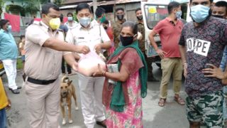 জলমগ্ন পরিবারের হাতে খাদ্যসামগ্রী তুলে দিলেন পুলিশ