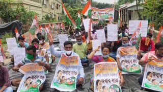 বৃষ্টিকে উপেক্ষা করেই তৃণমূলের বিক্ষোভ মিছিলে ঢল কর্মীদের